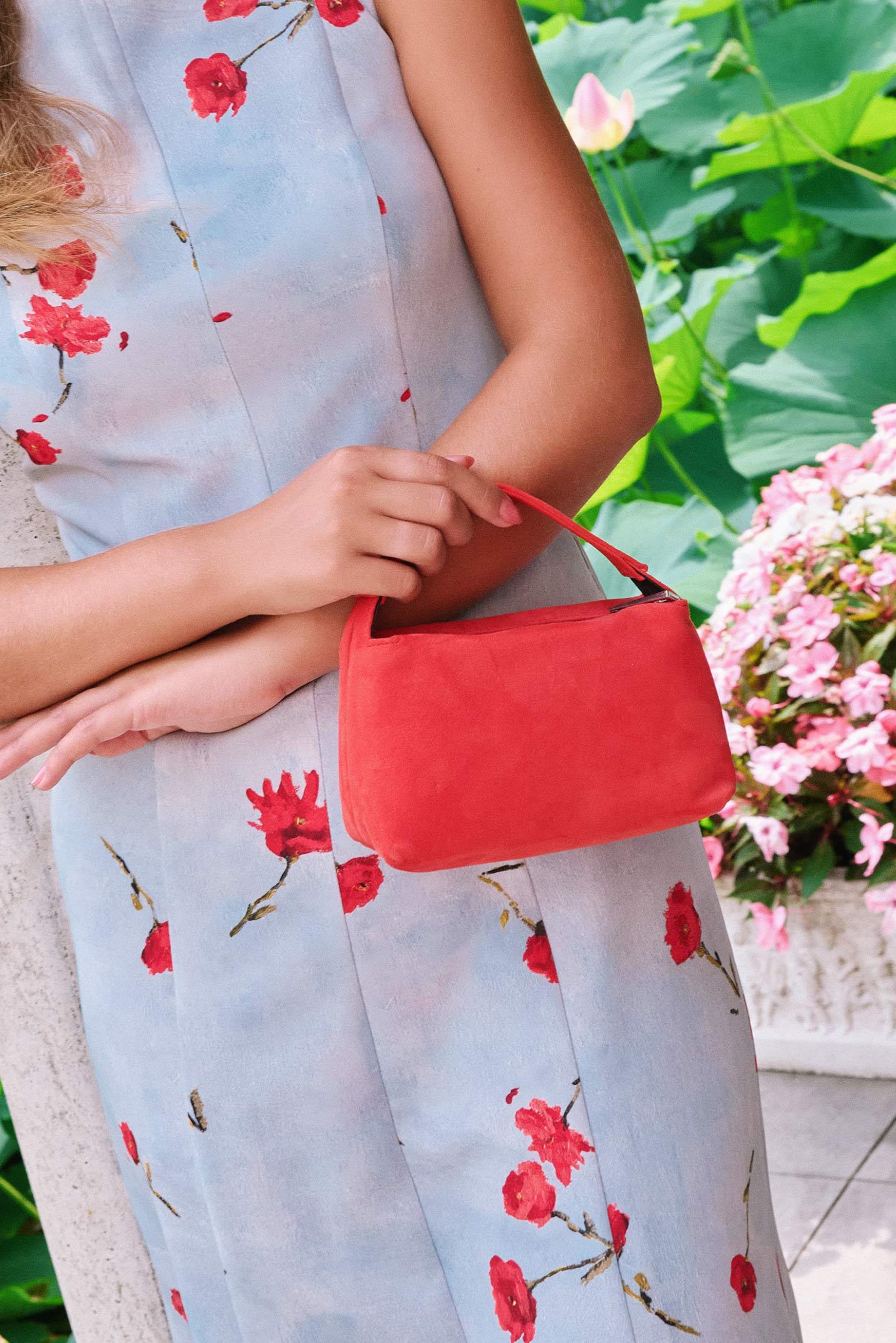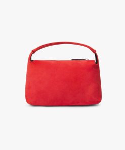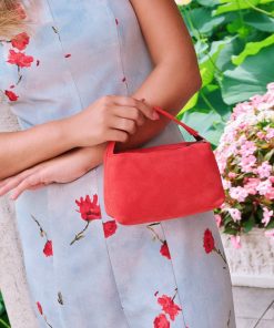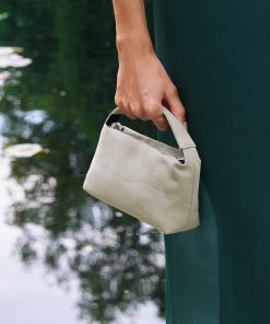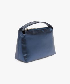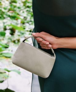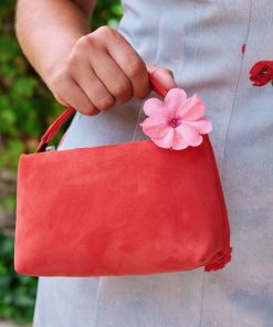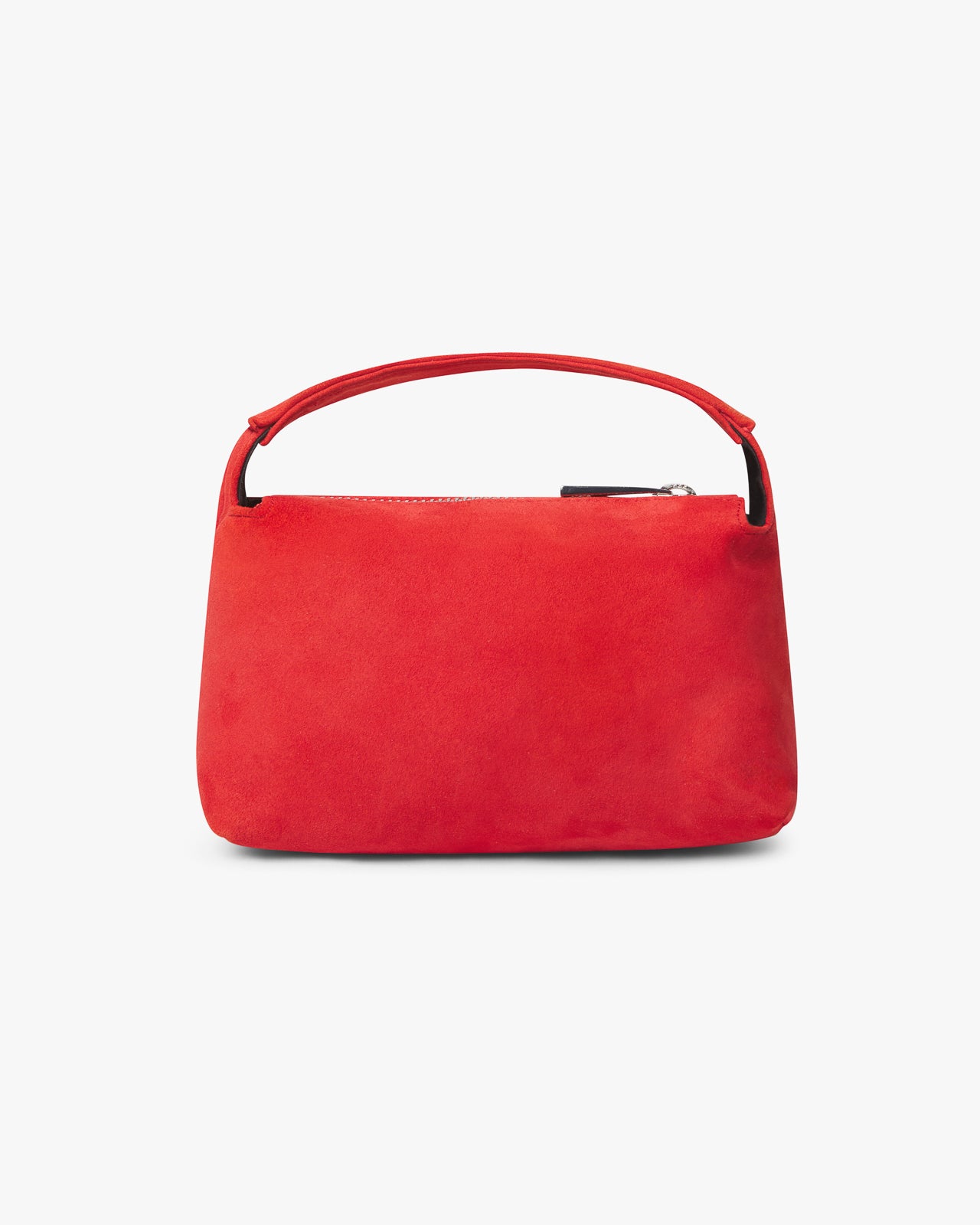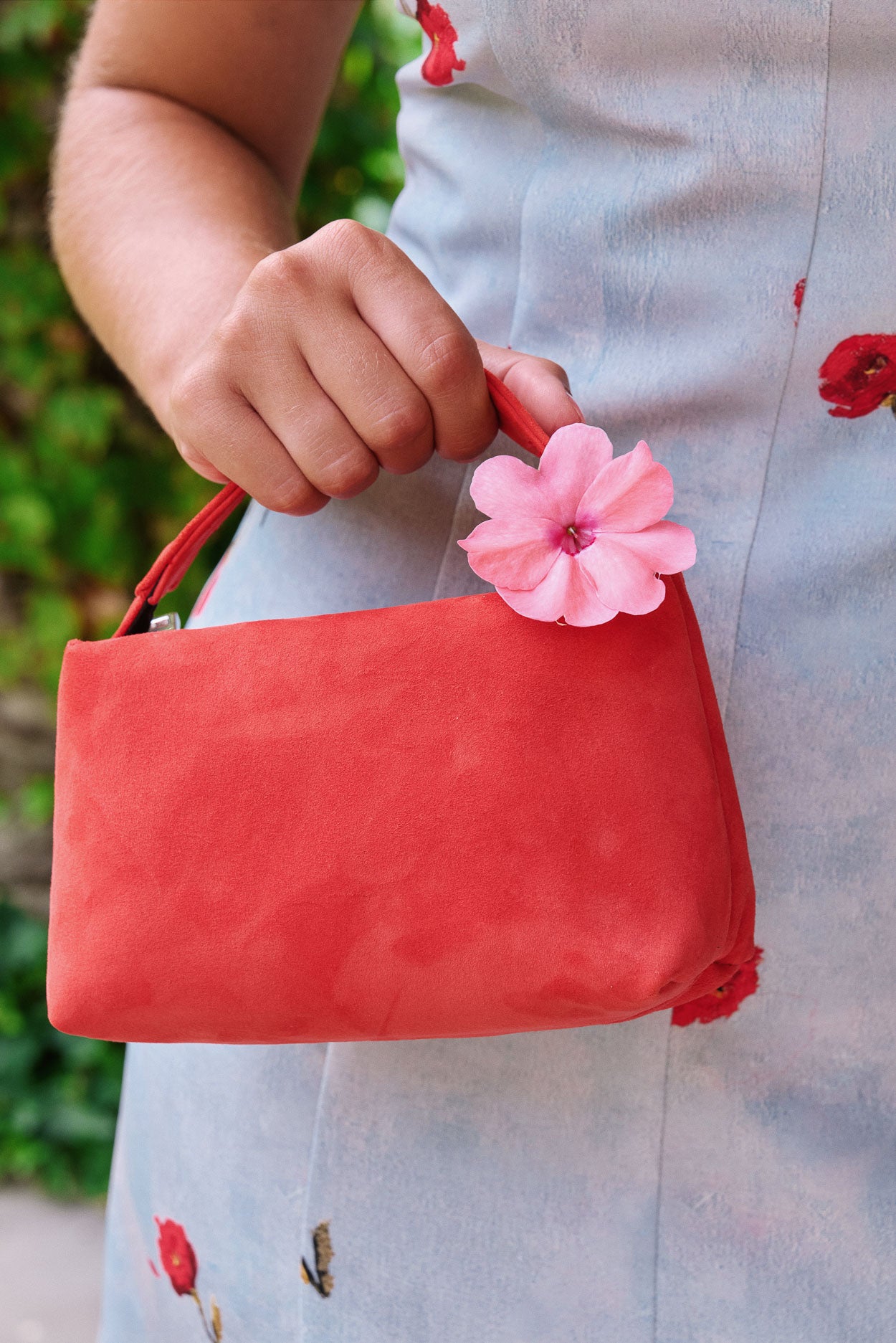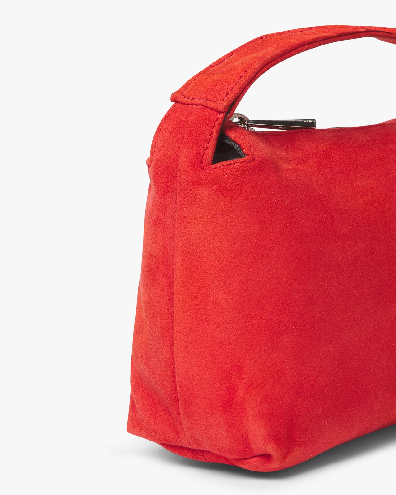 Bolso rectangular pequeño con asa de mano y cierre con cremallera.