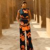 Vestido midi combinado con gasa y detalle de flecos a tono.