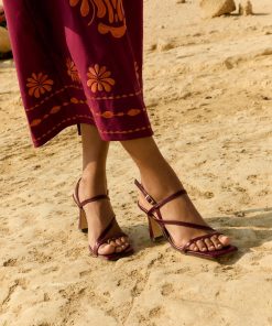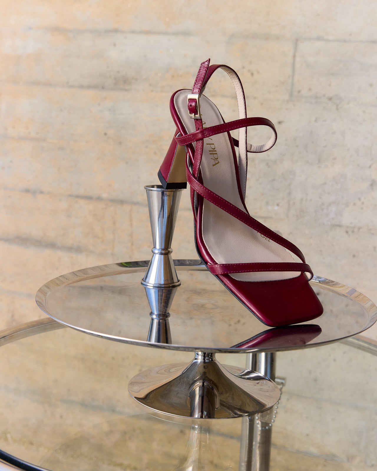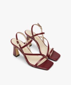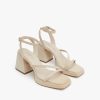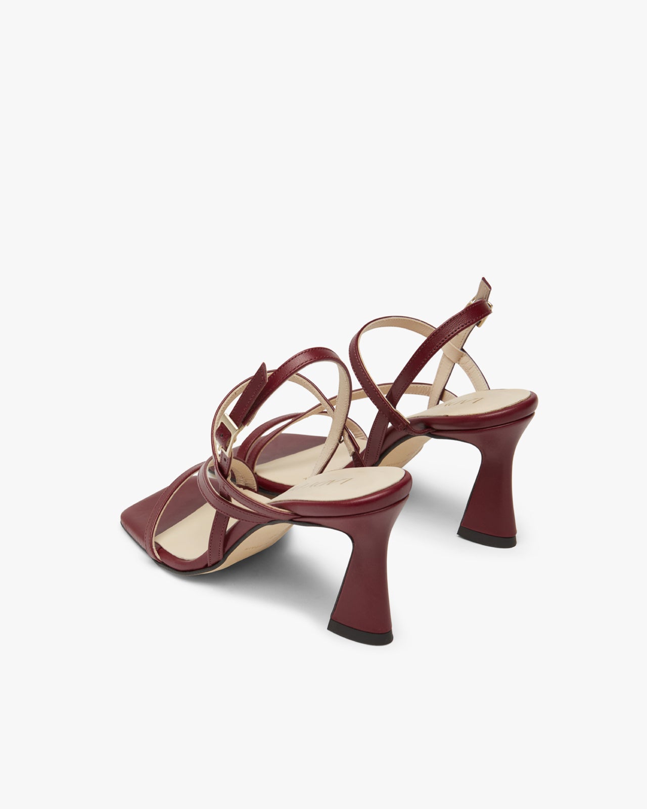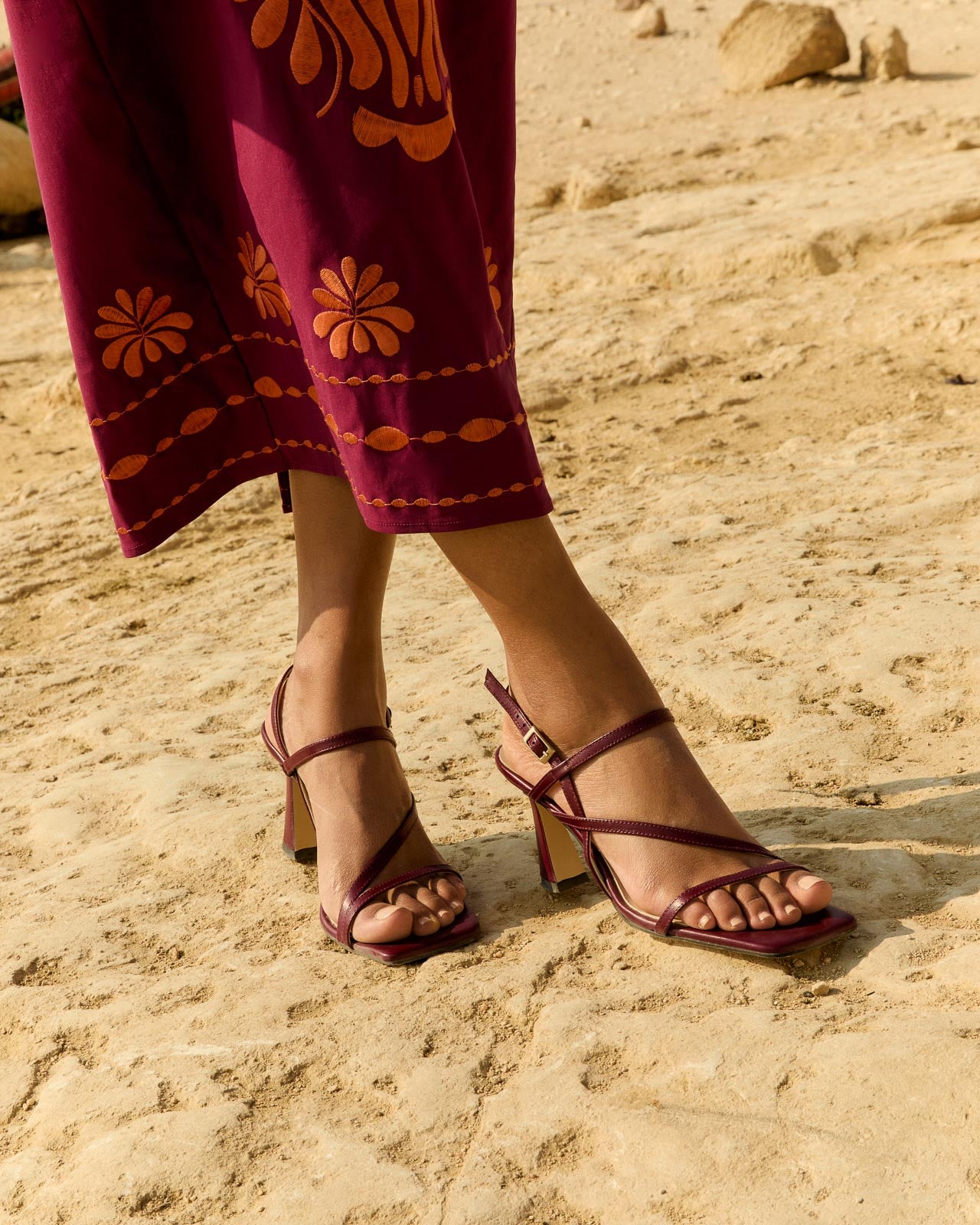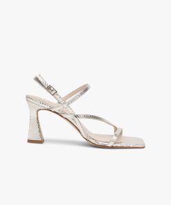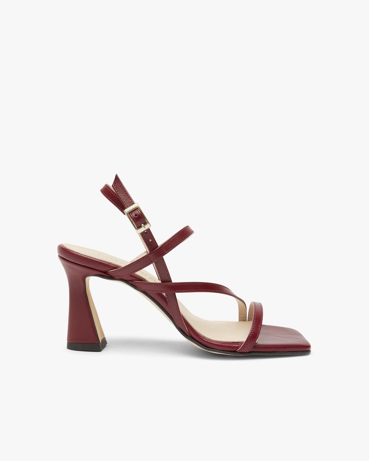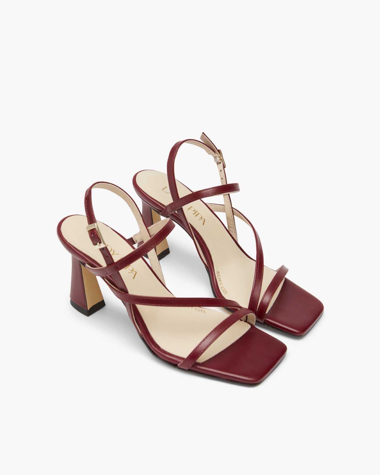 Sandalia de tacón asimétrico con tiras finas y puntera cuadrada. Cierre con hebilla. Tiene la planta muy acolchada para mayor confort.